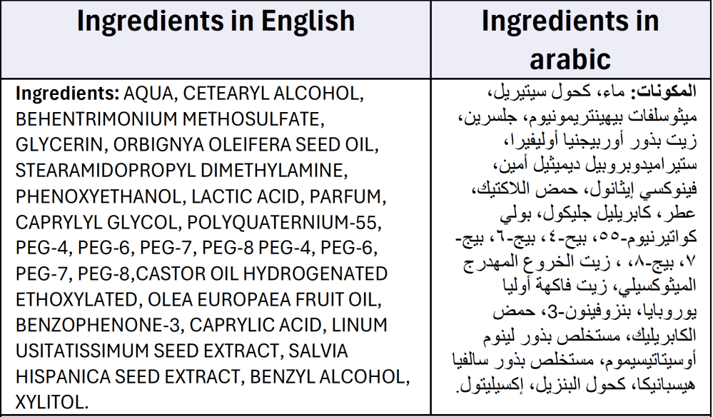 - يحتوي على زيت الزيتون، زيت الخروع، بذور الشيا.